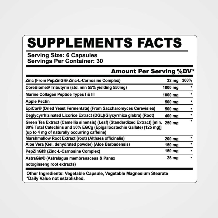 - For maximum GI support, take 3 capsules in the morning and 3 capsules at night away from food.